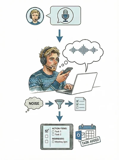 The Result You get a clean, structured list of tasks and notes instantly. Connected to Microsoft Outlook? Mike can even automatically insert these directly as tasks or calendar events.